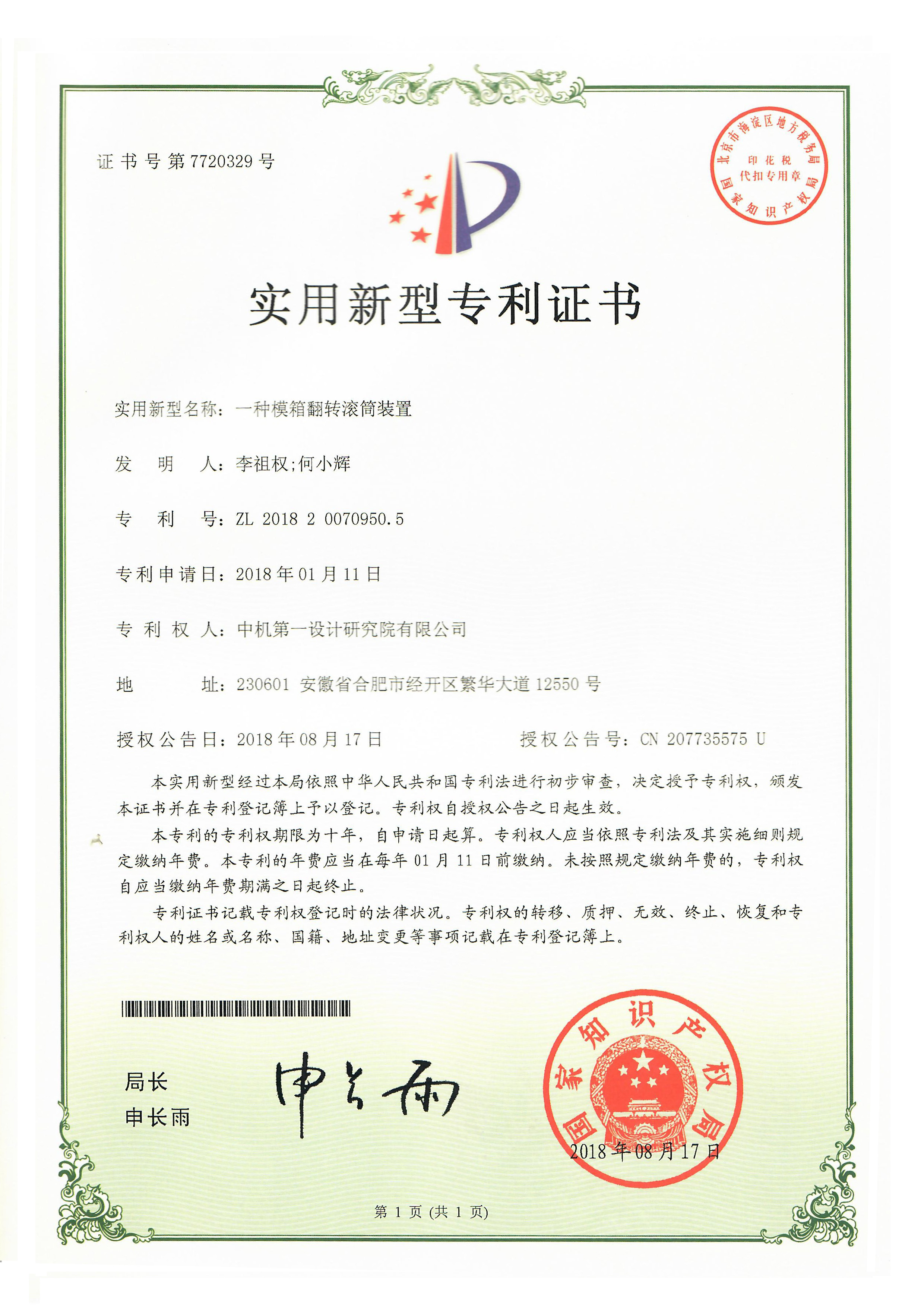 一種模箱翻轉(zhuǎn)滾筒裝置——實用新型專利